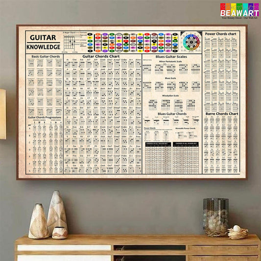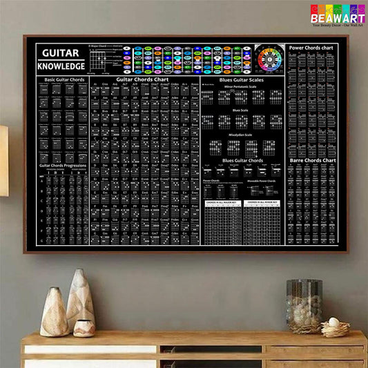 Guitar Knowledge Poster Canvas Wall Art, Guitar...