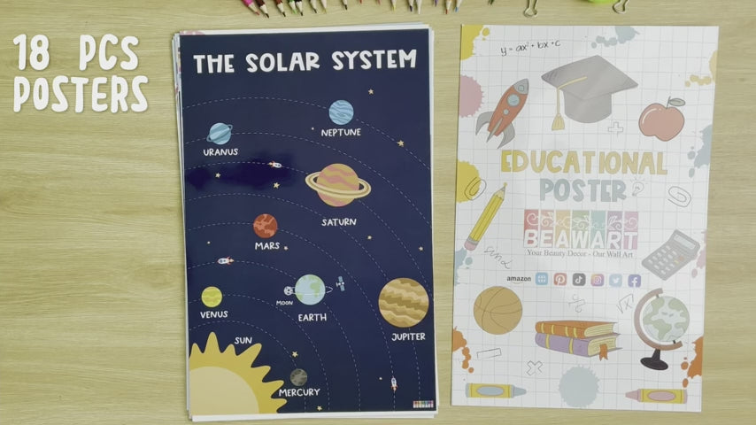 DESIGNED FOR CHILDREN AND CLASSROOM DECOR: We know that teaching young children is not easy as they often struggle to concentrate in class or at home. Some educational posters focus solely on knowledge, which can be boring! Understanding these difficulties, we designed educational posters that make learning exciting and not dull. These posters are not only eye-catching, but the knowledge in the 18 posters is truly amazing and easy to understand. Including the ABCs, days of the week, months of the year, numbers, counting, addition & subtraction, money, time, world and US maps, weather, shapes, colors, solar system, moon phases, calm down, classroom rules, emotions, and parts of the body...